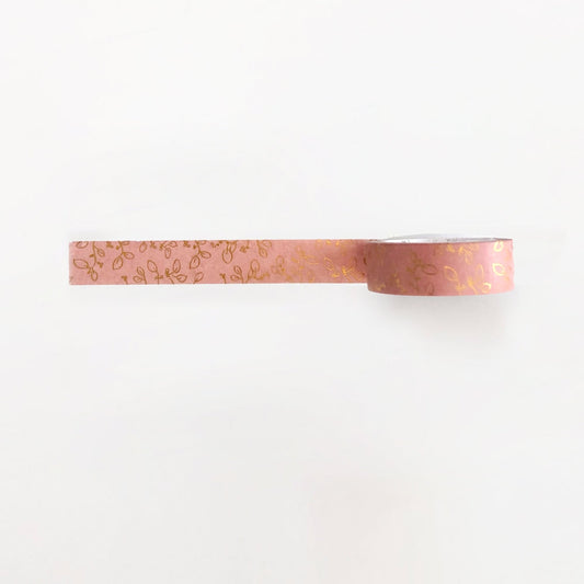Rose Pink Gold Foil Floral Washi Tape
